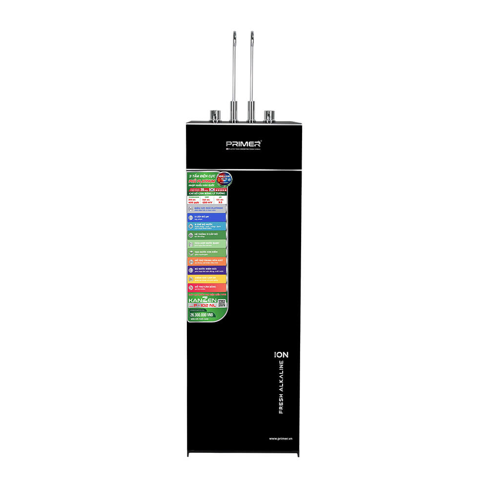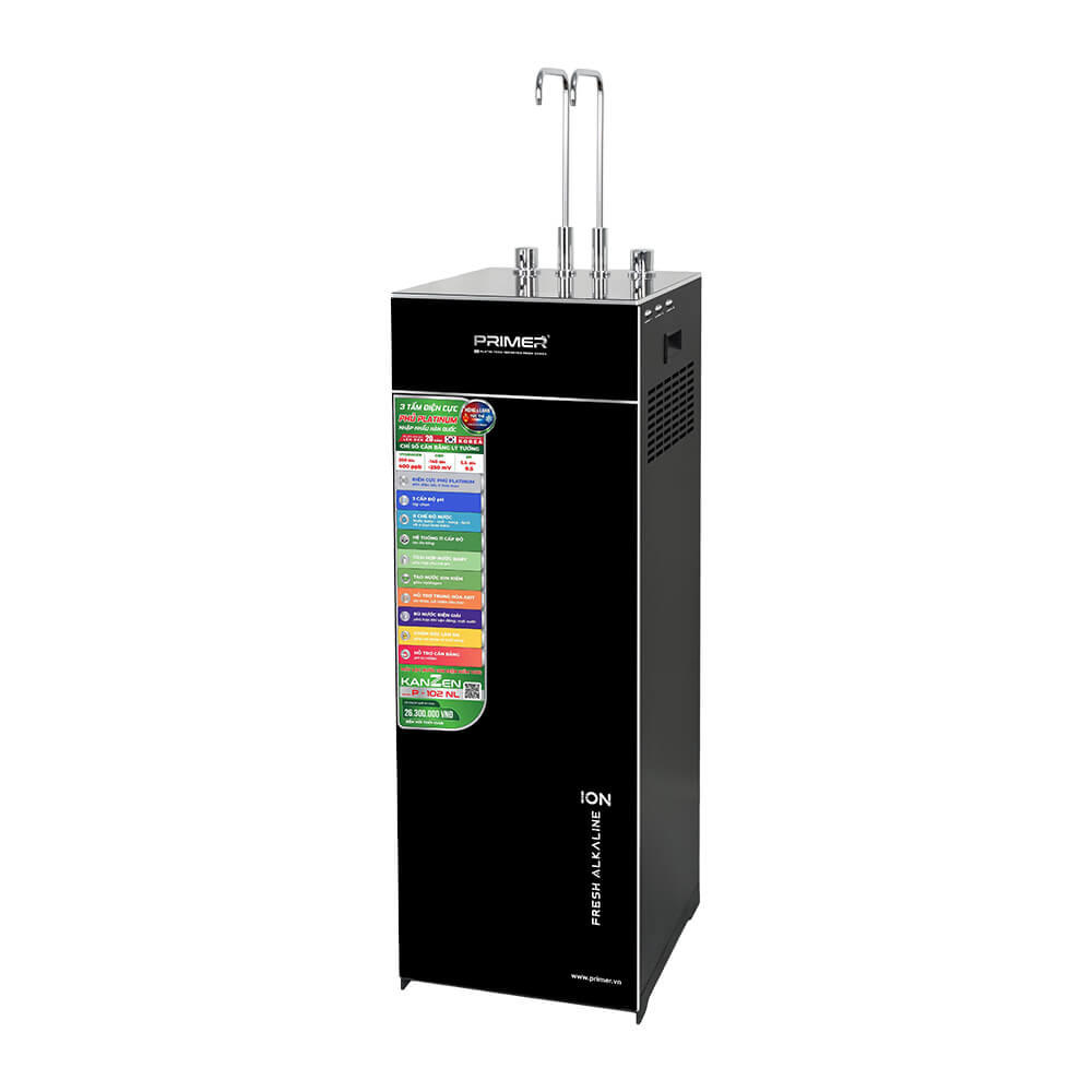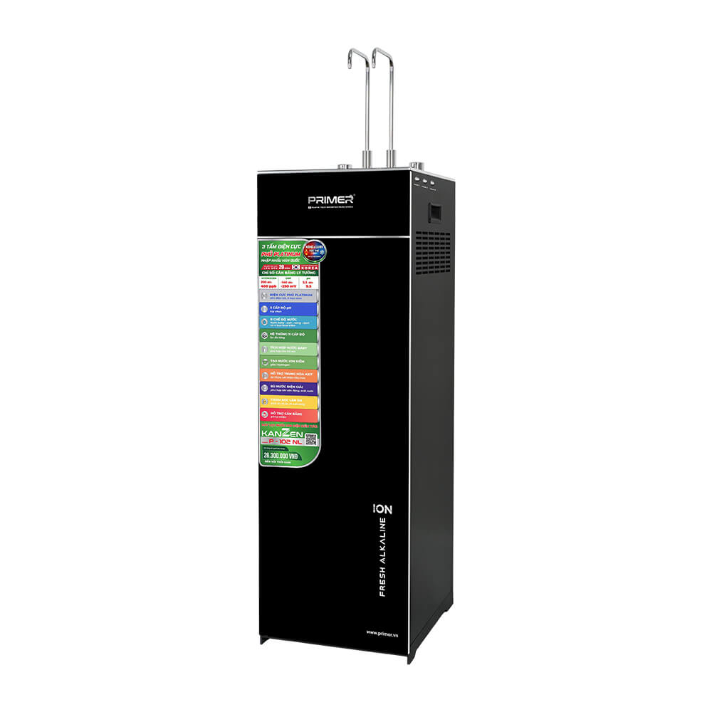 Máy lọc nước ion kiềm KANZEN P-102 NL là dòng sản phẩm cao cấp của Primer Group, được trang bị công nghệ điện phân hiện đại với bản cực nhập khẩu từ Hàn Quốc. Sản phẩm mang đến nguồn nước sạch, giàu ion kiềm và đa dạng chế độ sử dụng, đáp ứng toàn diện nhu cầu sinh hoạt và chăm sóc sức khỏe của gia đình. Với thiết kế sang trọng, tích hợp nóng – lạnh và hệ thống lọc đa tầng, KANZEN P-102 NL là lựa chọn phù hợp cho những gia đình hiện đại đang tìm kiếm giải pháp nước sạch kết hợp nâng cao chất lượng sống. KANZEN P-102 NL sử dụng công nghệ điện phân với 3 tấm điện cực Titanium phủ Platinum nhập khẩu từ Hàn Quốc. Đây là bộ phận cốt lõi giúp tạo ra nước ion kiềm chất lượng cao. Quá trình điện phân được thực hiện từ nguồn nước đã qua lọc RO, giúp: Công nghệ này giúp tạo ra nguồn nước giàu tính kiềm, phù hợp cho nhu cầu sử dụng hàng ngày và hỗ trợ chăm sóc sức khỏe. Máy được trang bị hệ thống lọc 11 cấp, giúp loại bỏ hiệu quả tạp chất, vi khuẩn, kim loại nặng và các chất gây hại trong nước. Nguồn nước đầu vào sau khi được xử lý sẽ đạt độ tinh khiết cao, là nền tảng để quá trình điện phân diễn ra hiệu quả và ổn định. KANZEN P-102 NL cung cấp 8 chế độ nước, đáp ứng đầy đủ nhu cầu sử dụng trong gia đình: Sự đa dạng này giúp người dùng dễ dàng lựa chọn loại nước phù hợp cho từng mục đích sử dụng. Sản phẩm tích hợp hệ thống làm nóng và làm lạnh với nhiệt độ: Người dùng có thể sử dụng ngay mà không cần chờ đợi, tiết kiệm thời gian trong sinh hoạt hàng ngày. Để máy lọc nước ion kiềm KANZEN P-102 NL hoạt động hiệu quả và ổn định lâu dài, chất lượng nước đầu vào đóng vai trò rất quan trọng. Sản phẩm được thiết kế để hoạt động tốt nhất khi sử dụng nguồn nước đã qua xử lý bằng công nghệ RO với các chỉ số phù hợp. Đây là mức nước đầu vào phổ biến tại nhiều khu vực, đảm bảo quá trình điện phân diễn ra ổn định và tạo ra nước ion kiềm đạt chất lượng cao. Ở mức cấu hình Pro này, nước đầu vào có độ tinh khiết cao hơn, giúp: Nguồn nước ion kiềm từ KANZEN P-102 NL mang lại nhiều lợi ích thiết thực: Máy được thiết kế với kiểu dáng sang trọng, bo viền mềm mại kết hợp khung tôn chắc chắn, phù hợp với nhiều không gian nội thất như gia đình, văn phòng hoặc showroom. Dung tích bình chứa lớn giúp đáp ứng nhu cầu sử dụng liên tục trong ngày. Chính sách rõ ràng giúp người dùng yên tâm trong quá trình sử dụng lâu dài. Máy lọc nước ion kiềm KANZEN P-102 NL là giải pháp toàn diện cho nhu cầu sử dụng nước sạch và chăm sóc sức khỏe trong gia đình hiện đại. Với công nghệ điện phân tiên tiến, hệ thống lọc hiệu quả và 8 chế độ nước đa dạng, sản phẩm mang lại trải nghiệm tiện nghi và giá trị sử dụng lâu dài.Công nghệ điện phân tạo nước ion kiềm